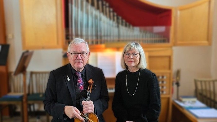 Anne Marie Jørgensen er organist og pianist på 28- år i Aunslev, Bovense og Hjulby Kirker. Knud Erik Jørgensen er bratschist/violinist/sanger. Gik på velfortjent pension fra Odense Symfoniorkester i oktober 2022.