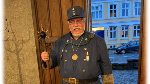 Hver onsdag afsluttes vægterrundgangen i kvarteret med en kort andagt kl. 22.00 i Vor Frue kirke, hvor vi synger et par salmer og får et ord med på vejen.